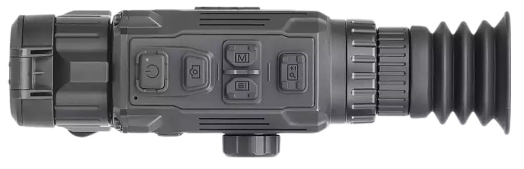 The AGM Rattler V2 25-384 thermal scope features a 35mm Germanium lens, a 384×288 resolution thermal sensor and a 3x base magnification with a detection range of up to 1800 m/yd. The RattlerV2 35-384 includes features such as an upgraded battery compartment that accommodates a rechargeable battery extending run time to 11 hours; 12-micron thermal sensor that has the highest sensitivity rating (sub-20 mk); Shot Activated Recording; simplified menu layout; 10 reticle options with multiple zeroing profiles for various calibers and rifles; raised 5-button layout for easy navigation, even with gloves. Includes a custom ADM QD Mount for easy removal and reattachment, two rechargeable batteries, battery charger, USB cable, lens cloth, owners manual and carrying case.